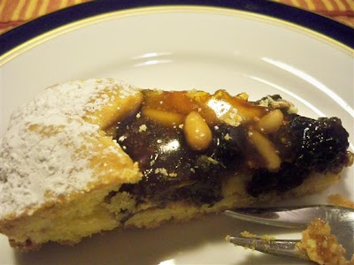 torta di frutta secca cotta al forno col suo velo di crema al limone stesa sulla frolla.